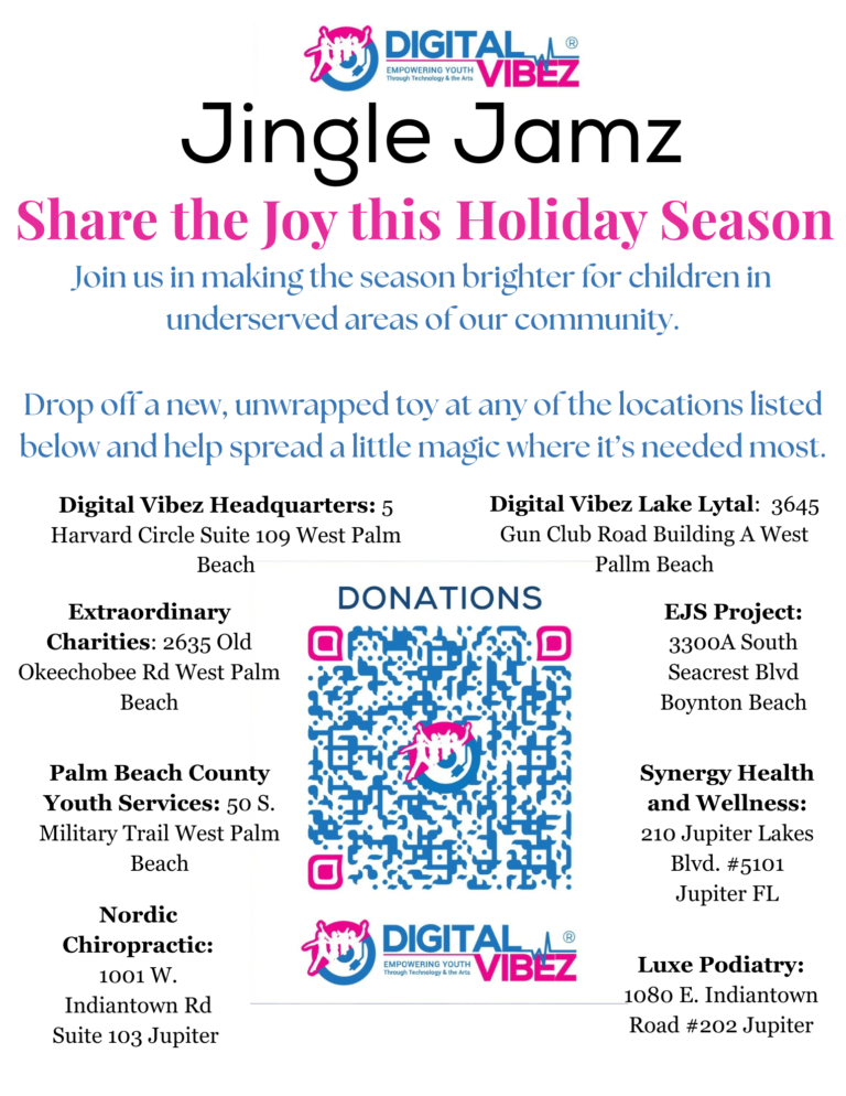 In the spirit of generosity and community upliftment, Digital Vibez orchestrated a remarkable outreach program that brought joy to numerous families in need, Jingle Jamz. The focal point of this initiative was for Digital Vibez staff and volunteers to load donated gifts onto our Digital Vibez Community Outreach bus during the height of Covid-19, providing an exciting and joyful experience as it traversed Palm Beach County neighborhoods and underserved communities. Several years later, Jingle Jamz has successfully grown to be more than donated gifts being delivered to local communities. It has grown to be a collective outreach initiative in partnership with other agencies and companies to take the impact event further. Checkout last year’s Jingle Jamz highlight below and more information below!